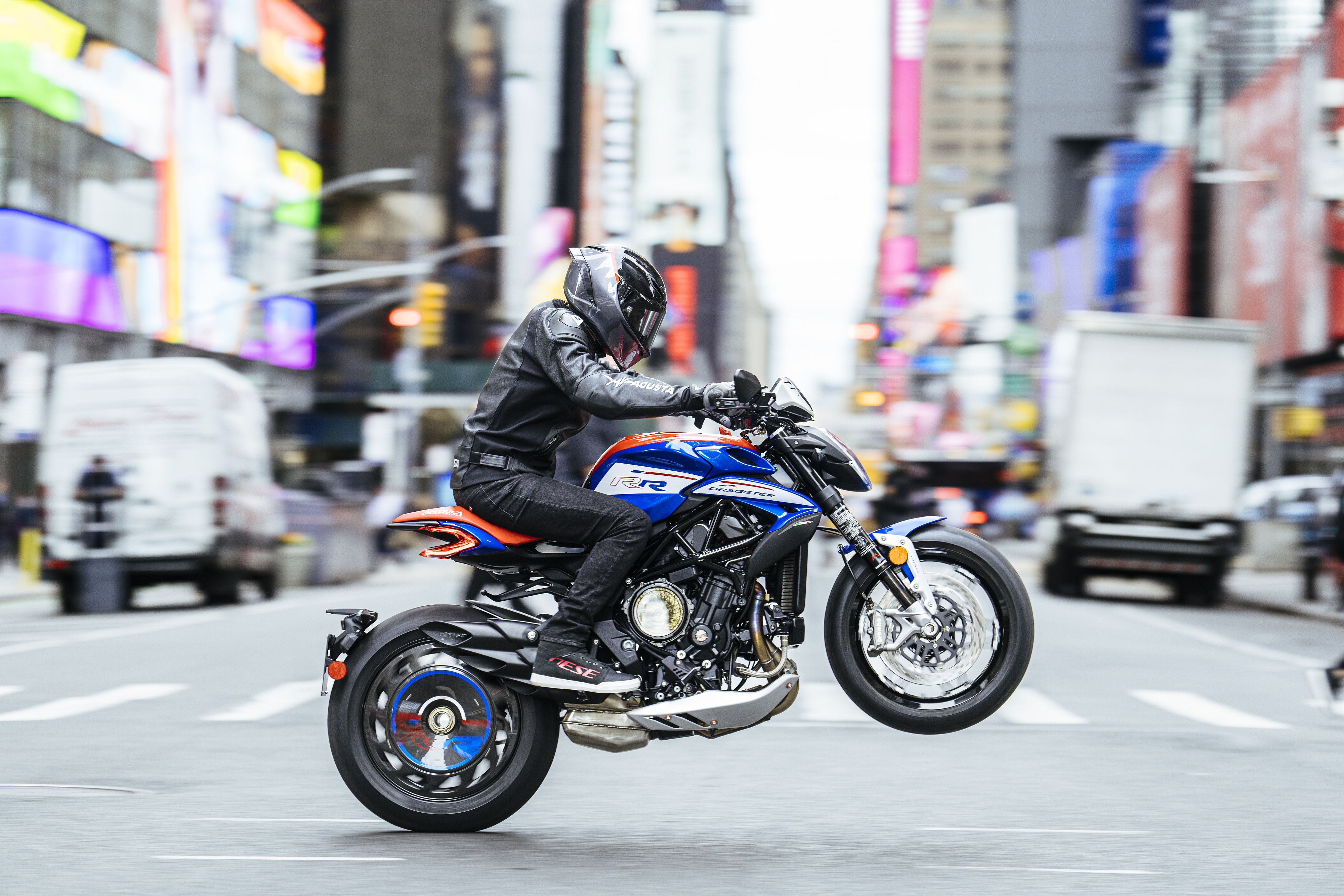 Le versioni “America” di MV Agusta nascono come omaggio agli Stati Uniti: terra di libertà, di avventura, di grandi viaggi. E naturalmente di corse. Il 1973 segna il debutto della 750S, che si fregia dei colori della bandiera statunitense per celebrare l’importanza di quel mercato. Passano molti anni, fino al 2004, prima che il nome America sia formalmente assegnato a un modello: è la Brutale 750, la moto che ha creato il segmento delle nude sportive. 2012, è un’altra quattro cilindri a calcare la scena: la Brutale 1090 RR America, la naked più potente prodotta da MV Agusta fino a quel momento. Dopo cinque anni, nel 2017, cambia il frazionamento ma non vengono meno le suggestioni: la tre cilindri Brutale 800 RR America è una mirabile sintesi tra design, prestazioni e tecnologia motoristica. Ed è una tre cilindri anche la Dragster 800 RR America, lanciata nel 2018 in edizione limitata di 200 esemplari. Gli Stati Uniti sono il mercato più importante per MV Agusta, ed è proprio in Nord America che sarà venduta in esclusiva la nuova Dragster RR SCS America, una preziosa edizione speciale, disponibile in soli 300 esemplari numerati.