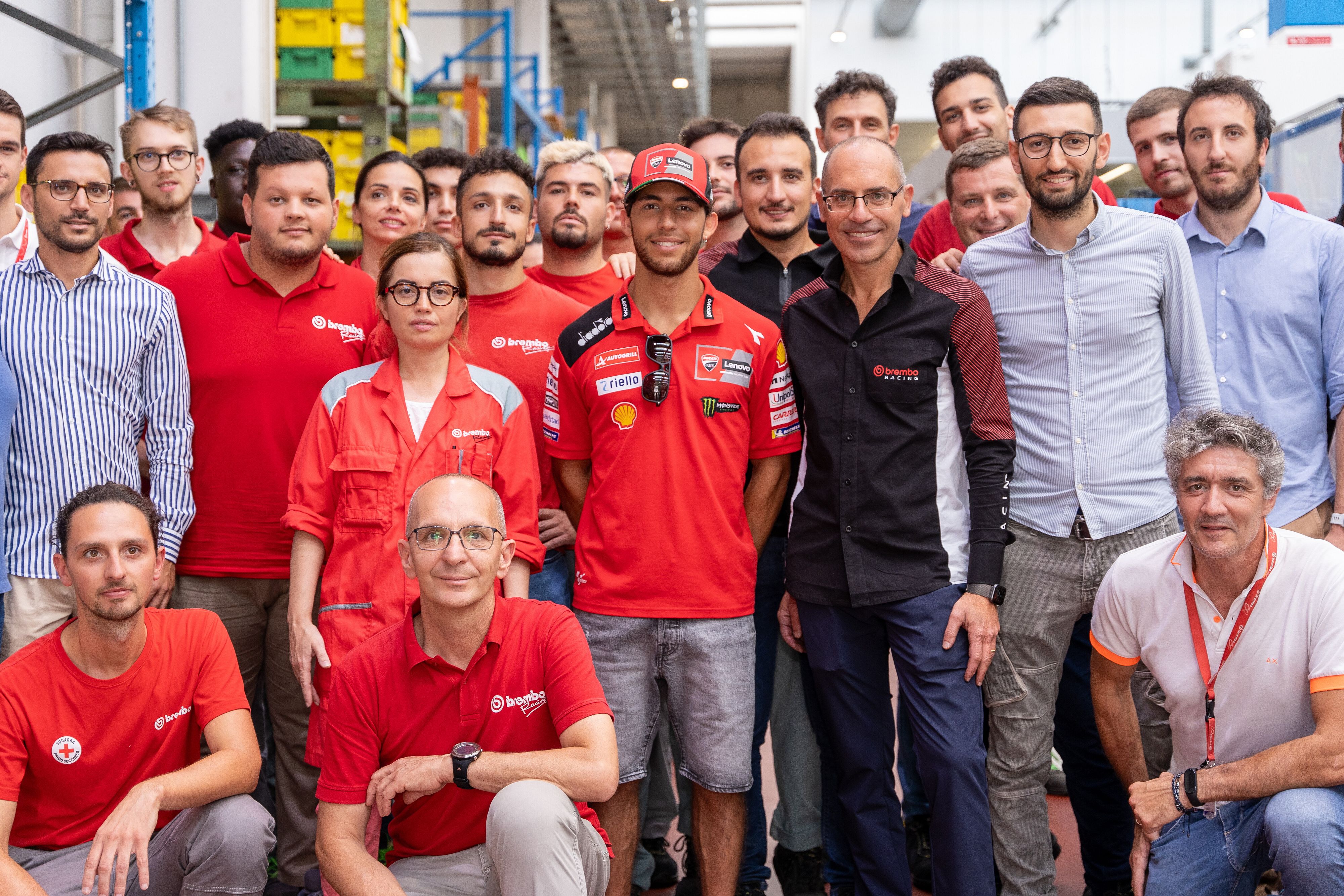 Brembo ha ospitato Enea Bastianini, il pilota romagnolo del Team Ducati-Lenovo, che ha fatto visita presso il Global Headquarter dell’azienda situato a Stezzano (Bergamo), all’interno del Kilometro Rosso. Enea ha avuto modo di visitare anche lo stabilimento produttivo Racing in cui vengono prodotti gli impianti frenanti per i team di Formula 1 e di MotoGP presso il sito di Curno, a pochi km da Stezzano.