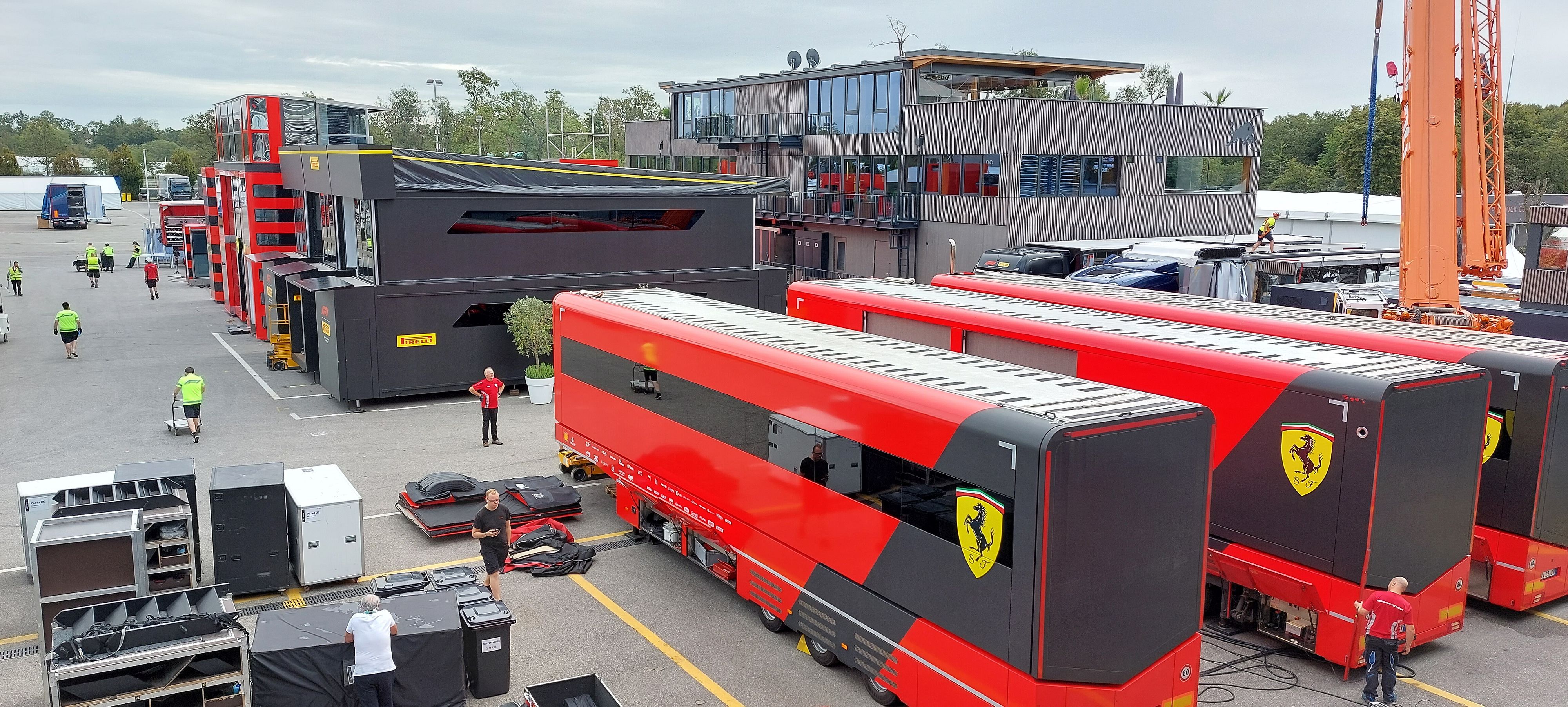 Ha preso vita il paddock dell'Autodromo di Monza, dove nel weekend si disputerà il GP d'Italia di F1. I bilici dei team hanno scaricato le mega hospitality, che in poche ore sono state innalzate a ridosso di garage e uffici permanenti. Una piccola città, che nasce e muore nel giro di una settimana.