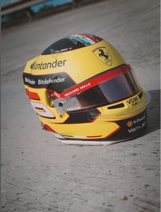Charles Leclerc ribadisce il suo amore per la Ferrari e per l'Italia. Il monegasco ha svelato il casco che indosserà nel weekend di Monza: il colore giallo richiama la livrea della macchina e la tuta, mentre il tricolore campeggia in bella vista accompagnato dalla scritta "Un sogno, un team".