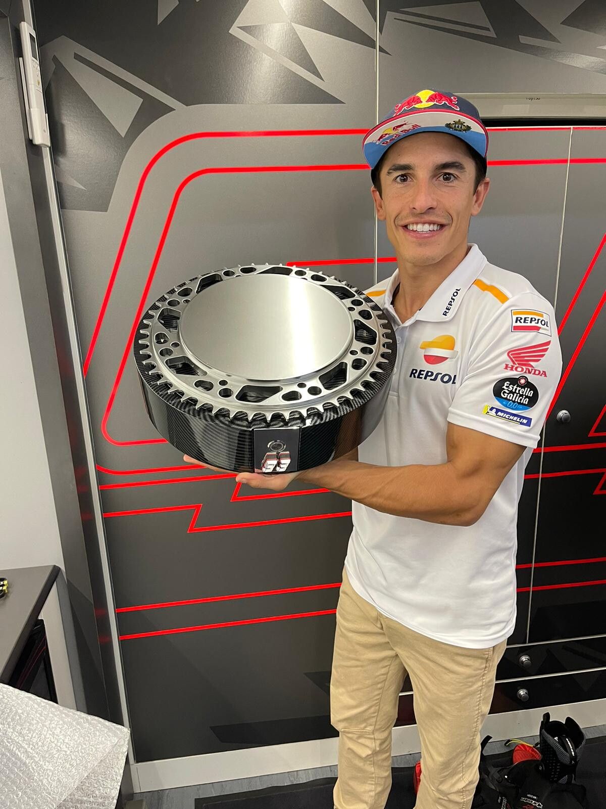 La nuova teca One in versione rotonda per i caschi è stata regalata, in occasione del weekend di Misano, a Marc Marquez. Teca One personalizzata con il numero 93 del campione spagnolo.