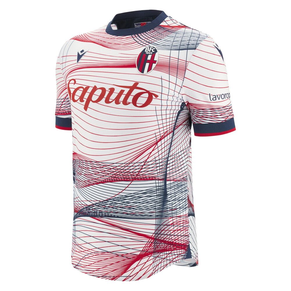 Nel giorno del 114° anniversario dalla fondazione del Club, il Bologna ha presentato la terza maglia per la stagione 2023-24, firmata Macron. Il rosso e il blu si intrecciano in una grafica optical avvolgente e molto impattante. Come le versioni Home e Away, anche questo kit è interamente realizzato con tessuti Eco Fabric, al 100% provenienti da plastica riciclata. Il nuovo optical kit del Bologna è a girocollo con bordo in maglieria blu, tonalità che ritroviamo anche sui bordi manica, qui insieme a una sottile linea rossa orizzontale. È sul fondo bianco della maglia che linee ondulate e astratte s’intrecciano a creare l’effetto optical. Il retrocollo è personalizzato con i colori del Bologna, la scritta “LO SQUADRONE CHE TREMARE IL MONDO FA”, il logo Macron e la scritta ‘Designed in Bologna’, che certifica come ogni capo sia ideato, progettato e sviluppato nell’Headquarters dello sponsor tecnico. Nel retrocollo esterno è stampata in rosso la scritta “WE ARE ONE”, claim identificativo del club. Sul petto, in stampa siliconata, a destra in blu il Macron Hero, a sinistra, lato cuore, il logo del Bologna Fc 1909.