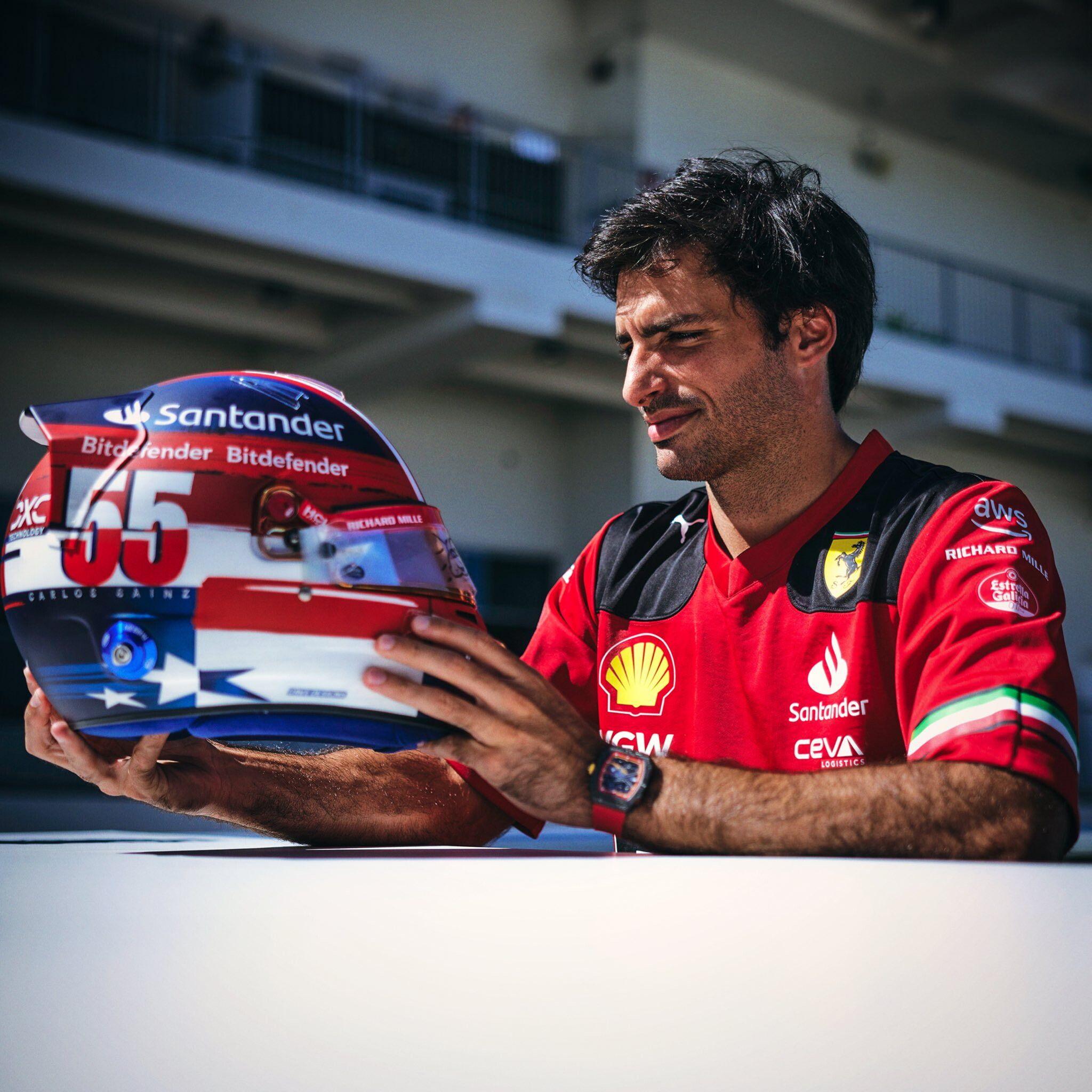 Casco a tema per Carlos Sainz per il GP di Austin. In Texas lo spagnolo della Ferrari indosserà il suo Bell con una livrea dedicata alla bandiera americana.