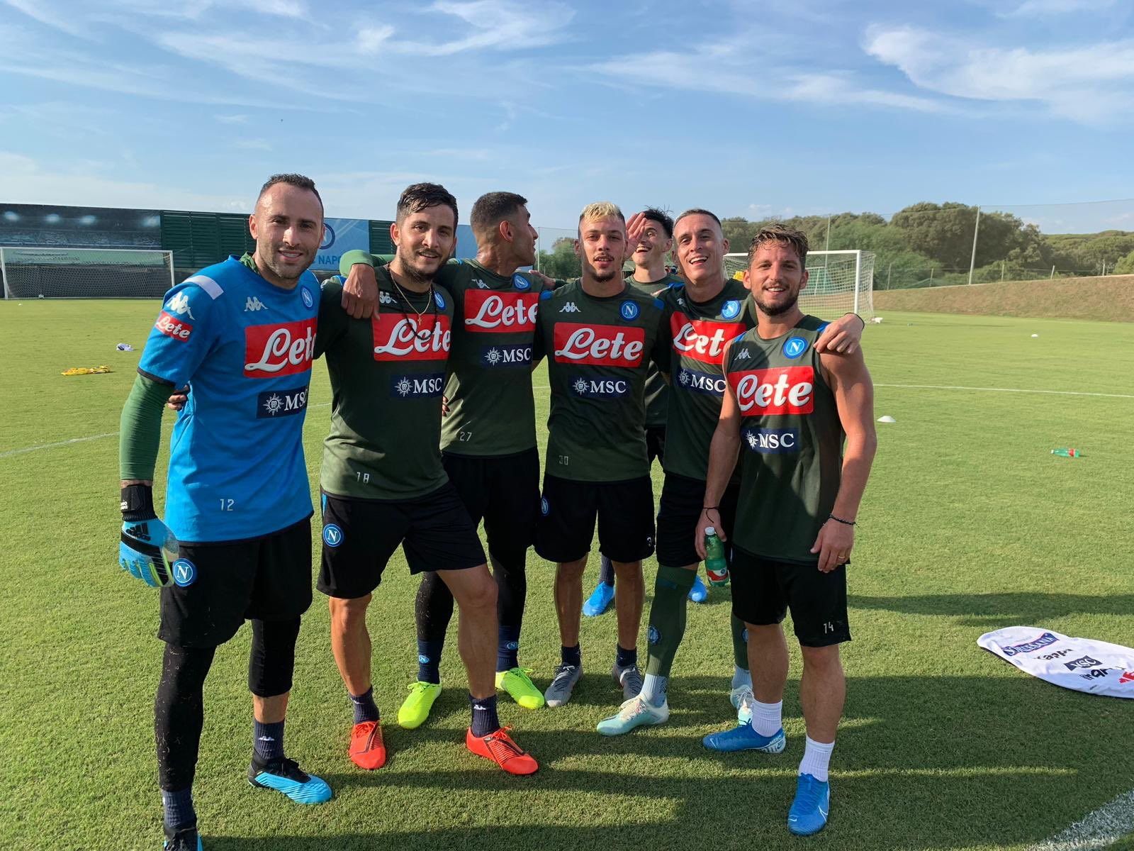 Gli azzurri si divertono con un quadrangolare a campo ridotto. Ed Elmas si infiltra nella foto dei vincitori. Ecco il post del Napoli: "Questi i 6 che si sono aggiudicati il quadrangolare del Napoli Training Center (non senza polemiche arbitrali). Non considerate Elmas che si è infiltrato. Una squadra quasi imbattibile!"