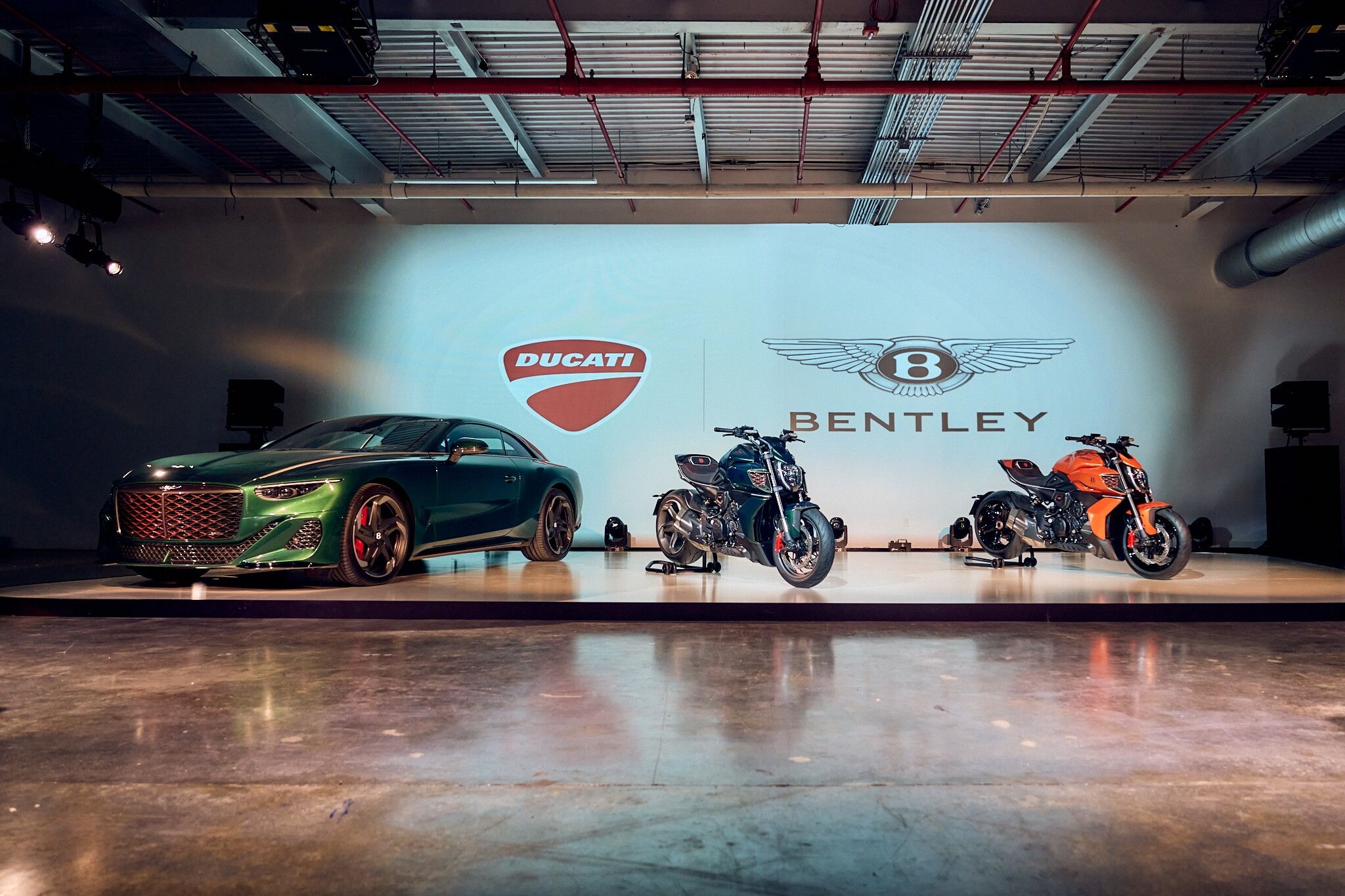 Ducati e Bentley hanno annunciato una nuova moto in edizione limitata che celebra il meglio di entrambi i marchi: il Ducati Diavel for Bentley. Nato dalla collaborazione fra le due Case, questo progetto unisce Ducati a Bentley in un’affinità di visione fatta di performance, cura artigianale ed esclusività. Il risultato è una sintesi sorprendente di tecnologia, stile e prestazioni capace di far sognare gli appassionati. La moto è stata svelata al pubblico con un evento fuorisalone nel contesto della settimana di Art Basel a Miami Beach, l'edizione oltreoceano della fiera d'arte più prestigiosa del vecchio continente. Sulla sofisticata base tecnica del Diavel V4, performante e confortevole, Ducati ha integrato numerosi elementi di stile caratterizzanti della Batur, modello prodotto in serie limitatissima che anticipa le future tendenze stilistiche Bentley, creando una moto unica per ricercatezza e design. Il Diavel for Bentley sarà realizzato in serie numerata e limitata a 500+50 esemplari, questi ultimi riservati ai clienti Bentley. Il Centro Stile Ducati, in collaborazione con i designer Bentley, ha creato un design nuovo per questa moto speciale, traendo ispirazione dalla Batur da cui riprende innanzitutto le linee orizzontali della vista laterale. Il colore Scarab Green, disponibile solo sulle Bentley Mulliner, è sofisticato e raffinato, ricco di sfumature metallizzate e viene utilizzato su tutta la carrozzeria. Le linee decise e aggressive del Diavel V4 risultano profondamente riviste anche grazie ai nuovi componenti tecnici. I cerchi forgiati, sviluppati esclusivamente per questa moto, hanno lo stesso design di quelli dell’auto e vengono anche qui verniciati con lo stesso Dark Titanium Satin lasciando a vista alcune superfici con lavorazioni di macchina. Le griglie delle prese d’aria riprendono la calandra bicolore, uno degli elementi più riconoscibili della Batur mentre gli estrattori posteriori triangolari si rifanno ai corrispondenti elementi posizionati sopra al brancardo della vettura. Il parafango anteriore ed il top serbatoio ripropongono le nervature sul cofano, il piccolo cupolino si ispira all’innesto del parabrezza sul cofano mentre il codino monoposto, che può venire sostituito con la sella passeggero, riprende il concetto del doppio layer dell’estrattore posteriore dell’auto. Molte delle componenti delle sovrastrutture sono realizzate in pregiata fibra di carbonio (parafanghi, palpebra fanale, cover motore, scarico e radiatore, convogliatori, puntale, fianchetti, codino). La sella del pilota, in Alcantara nero ed ispirata agli interni della vettura, è realizzata con una lavorazione di precisione che lascia intravedere il tessuto rosso sottostante, adottando la stessa texture dei sedili della Batur e con il logo Bentley ricamato sul cuscinetto posteriore. Lo scarico a doppia uscita, con la relativa cover, è stato ridisegnato per armonizzarsi alle linee raffinate della moto. Batur è l’auto di serie più potente mai realizzata da Bentley , spinta da un motore W12 biturbo da 740 cavalli, di cui solamente 18 esemplari verranno realizzati artigianalmente da Bentley. Soprattutto, la Batur unisce la cura artigianale tipica del brand inglese a una carrozzeria dalle linee filanti ma al contempo muscolose e massicce che definisce un nuovo DNA di design Bentley, anticipando nuove direzioni per lo stile della Casa. Il suo design comunica grande potenza ed eleganza, privo di ostentazione o eccessi. I 18 esemplari della Batur verranno realizzati artigianalmente, uno per uno, da Mulliner, la carrozzeria più antica del mondo, che realizza internamente a Bentley le auto speciali. In aggiunta ai 500 esemplari di Diavel for Bentley, Ducati propone inoltre una serie di soli 50 esemplari, denominata Diavel for Bentley Mulliner , dal nome del reparto dove vengono realizzate le auto speciali e le one-off Bentley. I 50 Diavel for Bentley Mulliner saranno disponibili esclusivamente per altrettanti clienti Bentley, che attraverso una collaborazione diretta con i designer del Centro Stile Ducati, potranno configurare il proprio Diavel for Bentley Mulliner con diversi colori per sella, pinze freno anteriori, parti in fibra di carbonio e cerchi. Potranno inoltre scegliere per le parti di carrozzeria lo stesso colore della propria auto oppure uno fra quelli della esclusiva palette selezionata dai designer della Casa di Crewe. Il Diavel for Bentley, come tutte le Ducati da collezione, viene consegnato con il certificato d’autenticità, la sella passeggero, una sella pilota alternativa e il telo coprimoto. Il nome del modello e il numero progressivo dell’esemplare vengono riportati su una targhetta inserita nella cover in fibra di carbonio della testata verticale , sul lato destro della moto. Sia il cruscotto, dotato di serie di navigatore turn-by-turn, che la matrice di LED del gruppo ottico posteriore propongono al key-on un’animazione speciale che rende ancora più inconfondibile il Diavel for Bentley. Infine, ciascun Diavel for Bentley sarà consegnato in un’esclusiva cassa in legno personalizzata. La collaborazione fra le due Case ha portato anche alla creazione di una Capsule Collection, riservata ai possessori di Diavel for Bentley, che permette di completare il proprio look con un casco jet e un giubbotto tecnico (disponibile sia in versione maschile che femminile) in edizione limitata, caratterizzati da uno schema colori che riprende quello della moto. Il Diavel for Bentley adotta il motore V4 Granturismo da 1.158 cm3 , elemento centrale del suo design e allo stesso tempo scelta tecnica di grande raffinatezza. Potente (168 CV), ricco di coppia ma anche estremamente leggero e compatto, è allo stesso tempo fluido, regolare e sfruttabile fin dai regimi più bassi. L’ordine di scoppio Twin Pulse, insieme all’impianto di scarico dedicato, caratterizzano in modo inconfondibile il timbro dello scarico.