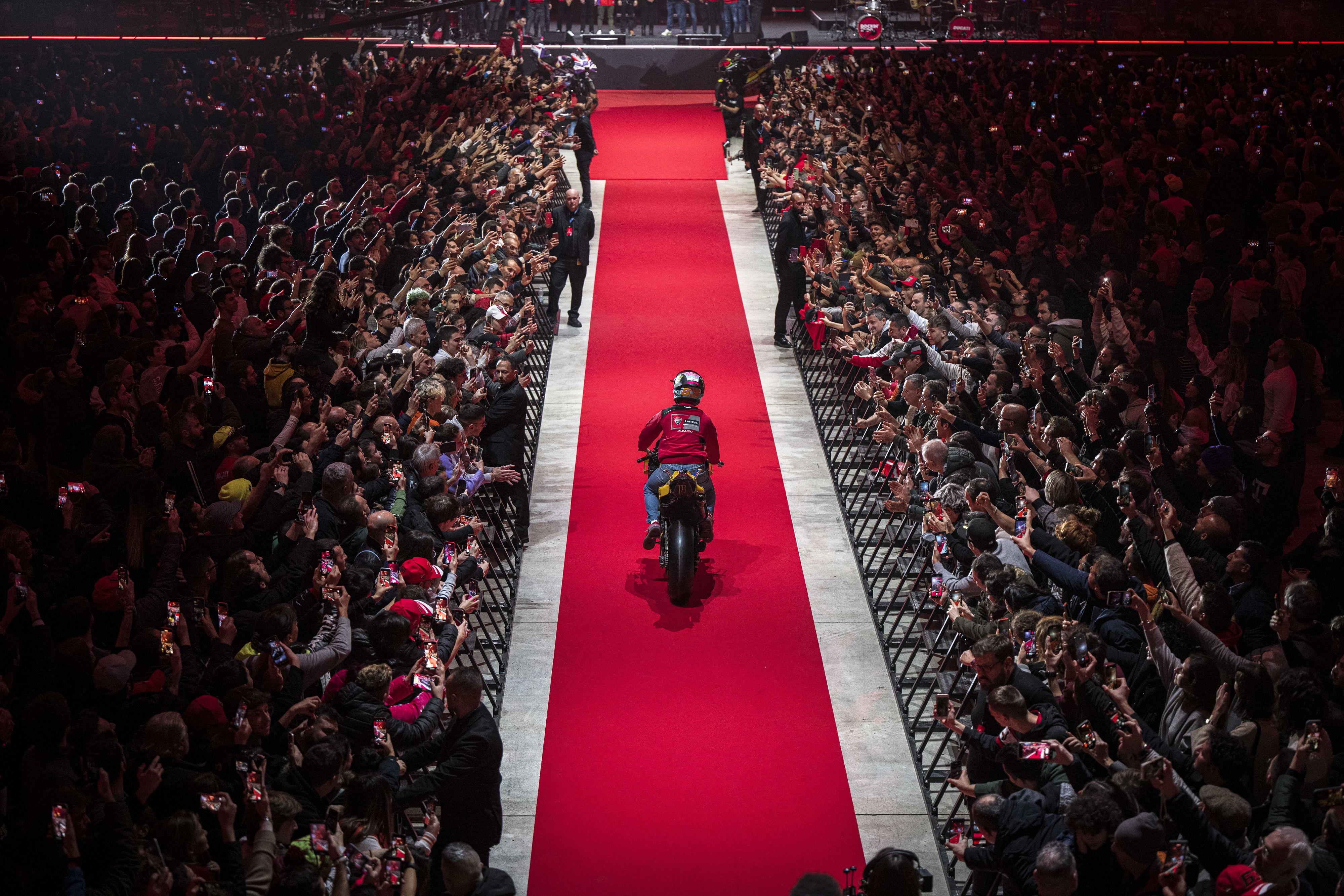 La Unipol Arena si è tinta di rosso per la grande festa Ducati: la casa di Borgo Panigale ha celebrato i titoli mondiali di Pecco Bagnaia in MotoGP, di Alvaro Bautista in Superbike e di Nicolò Bulega in Supersport. Davanti ai 7 mila appassionati anche Jorge Martin e Marco Bezzecchi, rispettivamente 2° e 3° classificato in MotoGP e decisivi nella conquista del titolo costruttori.