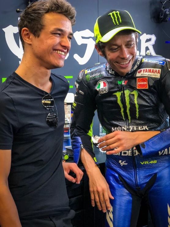 Il pilota della McLaren, grandissimo fan di Rossi, è stato suo ospite prima del GP di Gran Bretagna. Nel paddock della MotoGP anche Lance Stroll della Force India, che ha "provato" la Ducati di Petrucci, e l'ex McLaren (ora in Formula E) Stoffel Vandoorne.