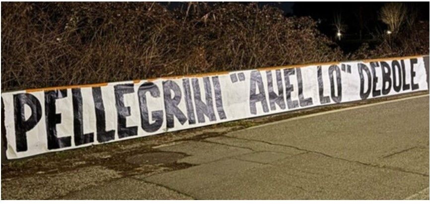 "Pellegrini anello debole". Questo lo striscione apparso nella notte a Trigoria, alla vigilia della partenza della squadra per Rotterdam. Il capitano giallorosso, 3 gol in 4 presenze con De Rossi, è di nuovo al centro delle critiche da parte della tifoseria, che fa riferimento all'anello che lui e i suoi compagni regalarono a Josè Mourinho dopo la vittoria in Conference League e che il tecnico ha restituito proprio al capitano il giorno dell'esonero con tanto di messaggio: "Me lo ridate quando diventerete uomini".