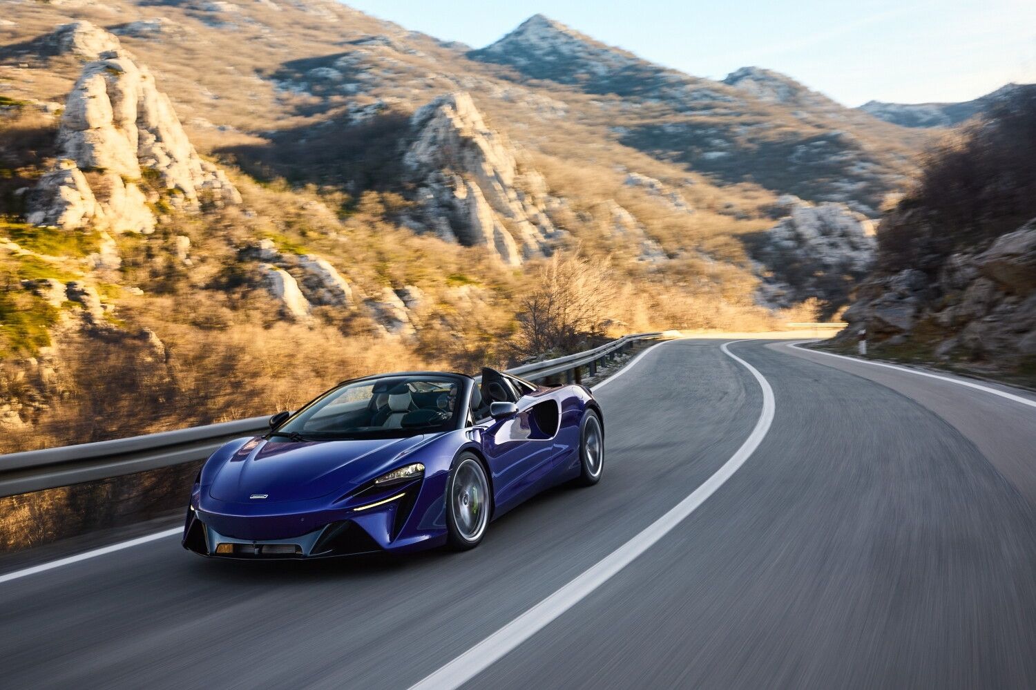 McLaren presenta la nuova Artura Spider, la sua prima decappottabile con propulsore ibrido ad alte prestazioni e il secondo modello Artura. La nuova Spider viene presentata con nuove caratteristiche a partire dall’incremento della potenza, prestazioni e coinvolgimento del conducente, che si combinano con i piaceri sensoriali della guida a cielo aperto per aggiungere una nuova importante dimensione all'Artura. Per esaltare ulteriormente le prestazioni da supercar di nuova generazione dell'Artura, i miglioramenti apportati alla Spider sono stati incorporati anche nella Artura coupé, con l'introduzione contemporanea di un nuovo modello. Sia la nuova Spider che la nuova coupé offrono i più alti livelli di prestazioni dinamiche - fino a una straordinaria capacità di performance in circuito - oltre a soddisfare i requisiti della guida quotidiana e ad offrire la quiete della guida elettrica, estremamente vantaggiosa nei percorsi urbani.La nuova Artura Spider è stata progettata e sviluppata per raggiungere obiettivi ambiziosi, con particolare attenzione al coinvolgimento del guidatore, alle prestazioni, all'agilità, alla raffinatezza, all'efficienza e alla qualità. Si aggiunge l’appeal dell’hard-top retrattile che si aziona elettricamente in soli 11 secondi per offrire un'esperienza a cielo aperto, che garantisce un'inebriante euforia da supercar.La nuova Artura Spider ha un peso a secco di soli 1.457 kg, con un peso a vuoto (DIN) di soli 1.560 kg, solamente 62 kg in più rispetto alla coupé Artura. Queste cifre posizionano la nuova Spider come la più leggera tra le concorrenti vetture cabriolet con un peso ridotto che arriva fino a 83 kg. In combinazione con i 700 CV del propulsore ibrido ad alte prestazioni, si ottiene un rapporto peso/potenza di 480 CV/tonnellata al peso a secco più leggero, che posiziona esattamente l'Artura Spider ad ottimizzare ogni aspetto della supercar ad alte prestazioni, compreso lo sfruttamento del motore centrale e della disposizione del telaio a trazione posteriore.