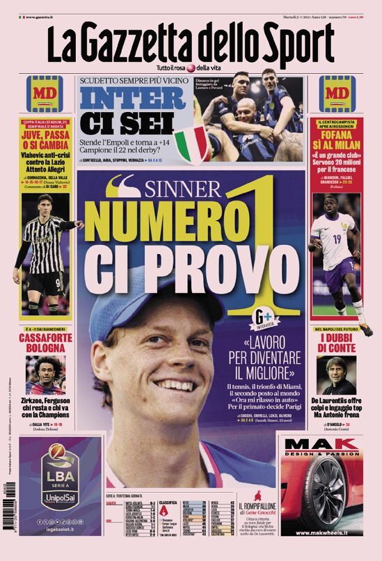 Rassegna stampa sportiva: i giornali di martedì 2 aprile