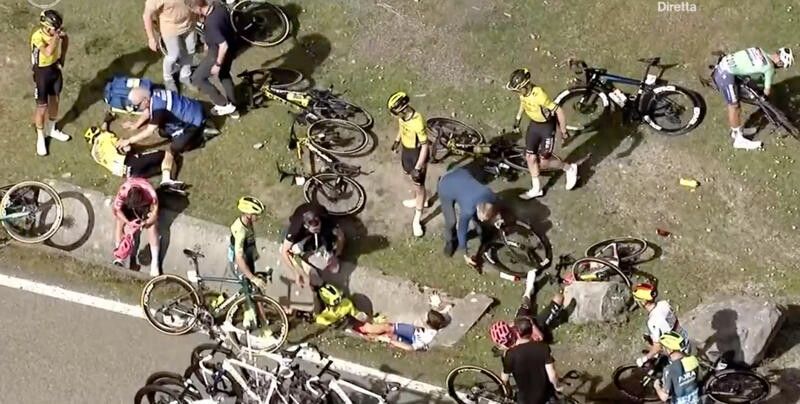Maxi-caduta alla quarta tappa del Giro dei Paesi Baschi, la Etxarri Aranatz-Legutio di 159 km. Lungo il passo di Untzilla, a 33 chilometri dal traguardo, sono rimasti coinvolti tra gli altri Jonas Vingegaard, Primoz Roglic e Remco Evenepoel. Per le ferite riportate rischiano la loro partecipazione al Tour de France. Il danese, rimasto a terra, e il belga che si toccava una spalla, sono stati portati in ospedale per accertamenti clinici mentre lo sloveno si è rialzato zoppicando vistosamente.