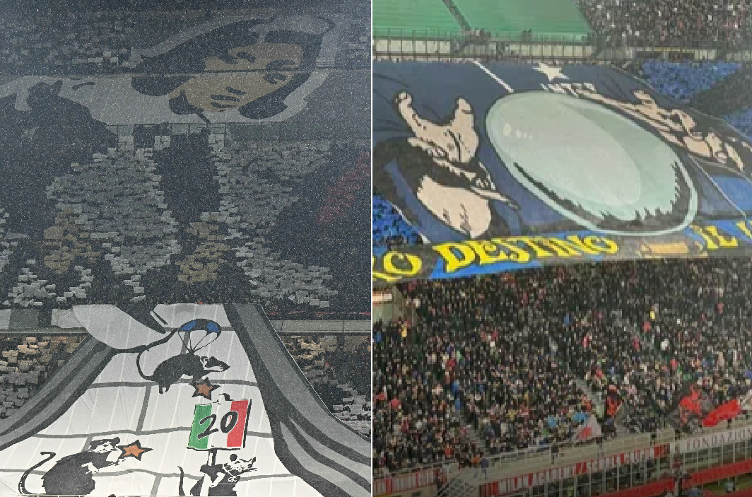 Milan-Inter, lo spettacolo è anche sugli spalti: le immagini delle coreografie