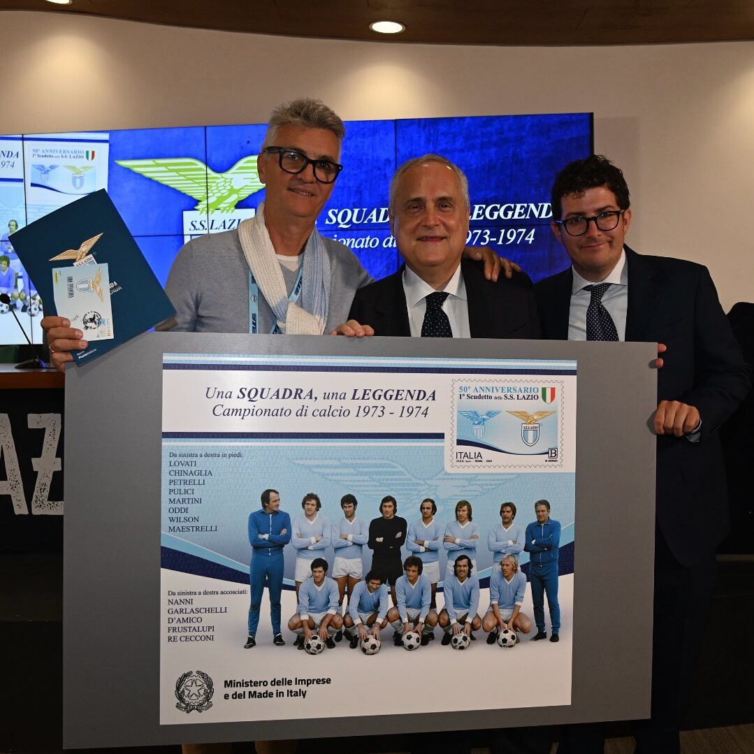 La Lazio festeggia i 50 anni dal primo scudetto, conquistato proprio il 12 maggio 1974. E lo fa con un francobollo e una medaglia che ricordano le gesta della banda Maestrelli guidata da Giorgio Chinaglia, autore del gol su rigore che consegnò lo scudetto di fronte al Foggia, presentati nella sala stampa dell'Olimpico. "Sono qui con profondo orgoglio perché sono il custode di un patrimonio di sentimenti comuni con l'obbligo di tramandare la storia del nostro club, che è unica. Onorare la nostra storia attraverso un francobollo e una medaglia è motivo di grande orgoglio. Queste iniziative servono a creare le condizioni per portare ai posteri queste gesta e farlo rappresenta un elemento di forza del club", le parole del presidente Claudio Lotito. Prima della gara contro l'Empoli tutti i tifosi della Lazio hanno omaggiato gli eroi del 1974 con applausi e cori, bandiere e vessilli con le foto dei protagonisti in Curva Maestrelli. Alla fine ancora applausi durante il giro di campo degli ex calciatori.