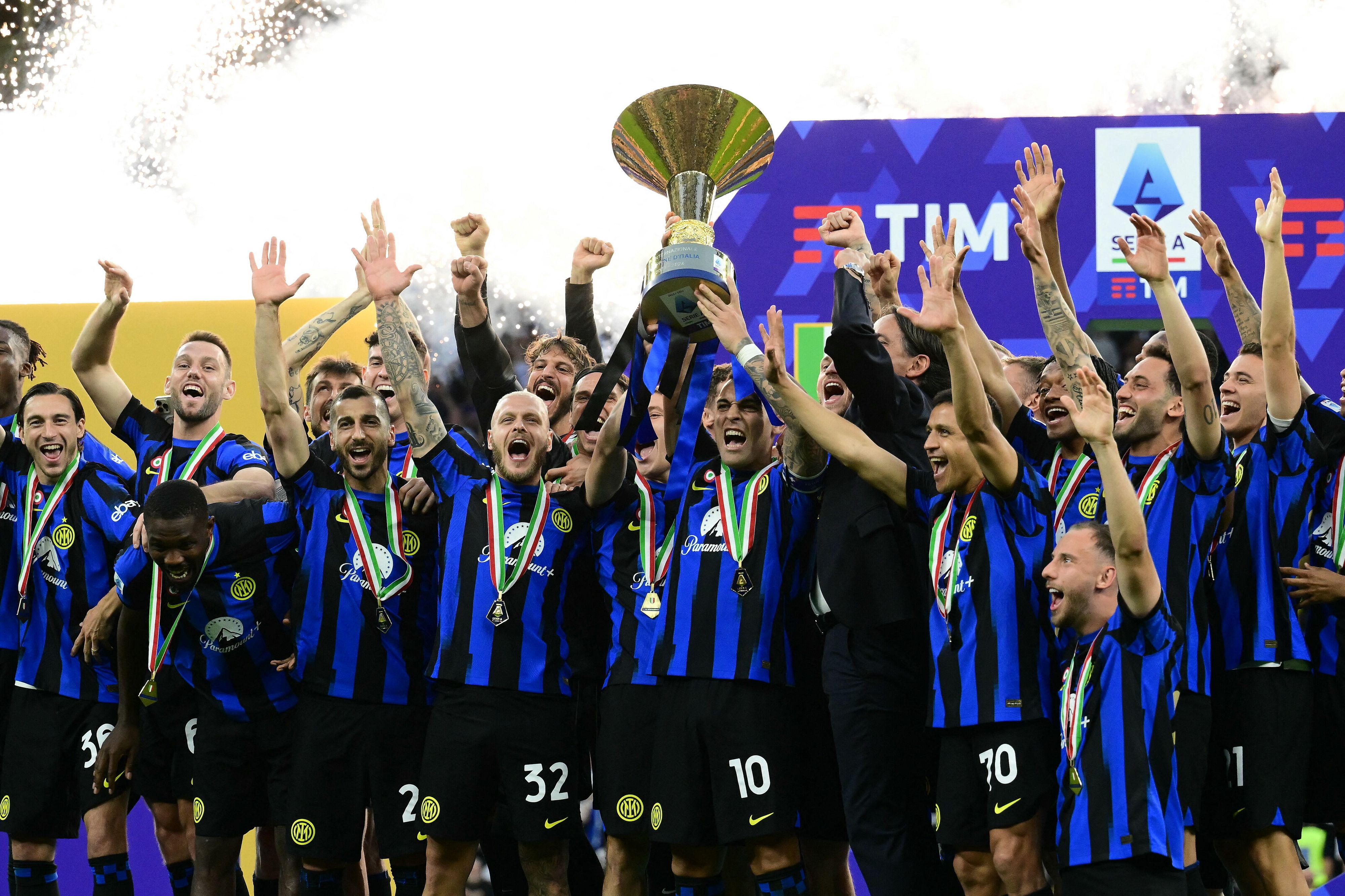 L'Inter ha conquistato il 20° scudetto e la seconda stella dopo una cavalcata trionfale nella Serie A 2023/24. A San Siro, dopo l'1-1 contro la Lazio nell'ultima gara interna della stagione, Simone Inzaghi e i suoi ragazzi sono stati premiati con il trofeo dello Scudetto con la sfilata per ricevere nuovamente il tributo dei tifosi.