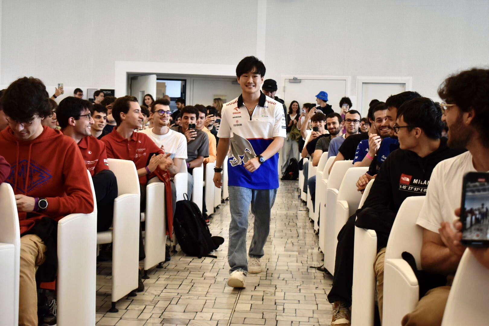 Il Red Bull Can You Make It? ha preso il via dal Politecnico di Milano, uno dei cinque starting point ufficiali dell’incredibile sfida in cui i giovani partecipanti, armati solo di lattine di Red Bull come valuta, dovranno attraversare l’Europa in sette giorni, con l’obiettivo di raggiungere Berlino. In occasione dell’evento, l’Ateneo milanese ha ospitato questa mattina nella prestigiosa Aula Trifoglio la lecture esclusiva di Yuki Tsunoda, pilota di Formula Uno di Visa Cash App RB F1 Team, special guest del Red Bull Can You Make It?. Durante l'incontro, davanti a una platea di quasi mille studenti, Tsunoda ha condiviso le sue esperienze nel mondo della Formula 1, discutendo con Carolina Tedeschi e il prof. Sergio Savaresi, Direttore del Dipartimento di Elettronica, Informazione e Bioingegneria, sul tema attuale del ruolo crescente dell’intelligenza artificiale nel settore automobilistico. Quest’anno il Red Bull Can You Make It? vede la partecipazione di 200 team internazionali provenienti da oltre 60 Paesi. I partecipanti, armati solo di lattine di Red Bull come moneta di scambio, dovranno attraversare l’Europa in sette giorni, con l’obiettivo di raggiungere Berlino. Ogni team potrà scegliere la propria strategia di gara e stabilire autonomamente la rotta da seguire, ma dovrà affrontare varie sfide nei diversi Check Point disseminati lungo il percorso, attraverso cui guadagnare punti e ulteriori lattine. In Italia sono disponibili i tre seguenti Check Point: Torino - Allianz Stadium, Faenza - Visa Cash App RB F1 Team Factory e Venezia - Remiera Canottieri Cannaregio. Tra i team partecipanti, ben 13 sono italiani e sono partiti dalle città di Amsterdam, Barcellona, Budapest e Copenaghen. Oggi, oltre ai 55 team internazionali, dal Politecnico di Milano sono partiti anche un team di creator e un team di ScuolaZoo, dando il via a un’avventura che metterà alla prova creatività, resistenza fisica e capacità di adattamento. Ad augurare loro buona fortuna per il viaggio proprio Yuki Tsunoda che ha così commentato: “Come pilota di Formula 1 viaggio moltissimo, ma non ho mai vissuto un’esperienza così unica come Red Bull Can You Make It? Se potessi partecipare, sceglierei come compagni di squadra Daniel Ricciardo e Pierre Gasly”.