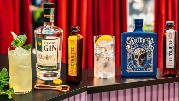 © Ufficio Stampa|BASTONIC Ingredienti: 50 ml gin Amuerte Blue, 20 ml Le Tribute Tonic Water Zero. Procedimento: iniziate versando 50 ml di gin Amuerte Blue in un bicchiere tumbler con ghiaccio. Colmate con Le Tribute Tonic Water Zero e infine guarnite con una buccia di limone. Abbinamento: Tacos con gamberi e guacamole