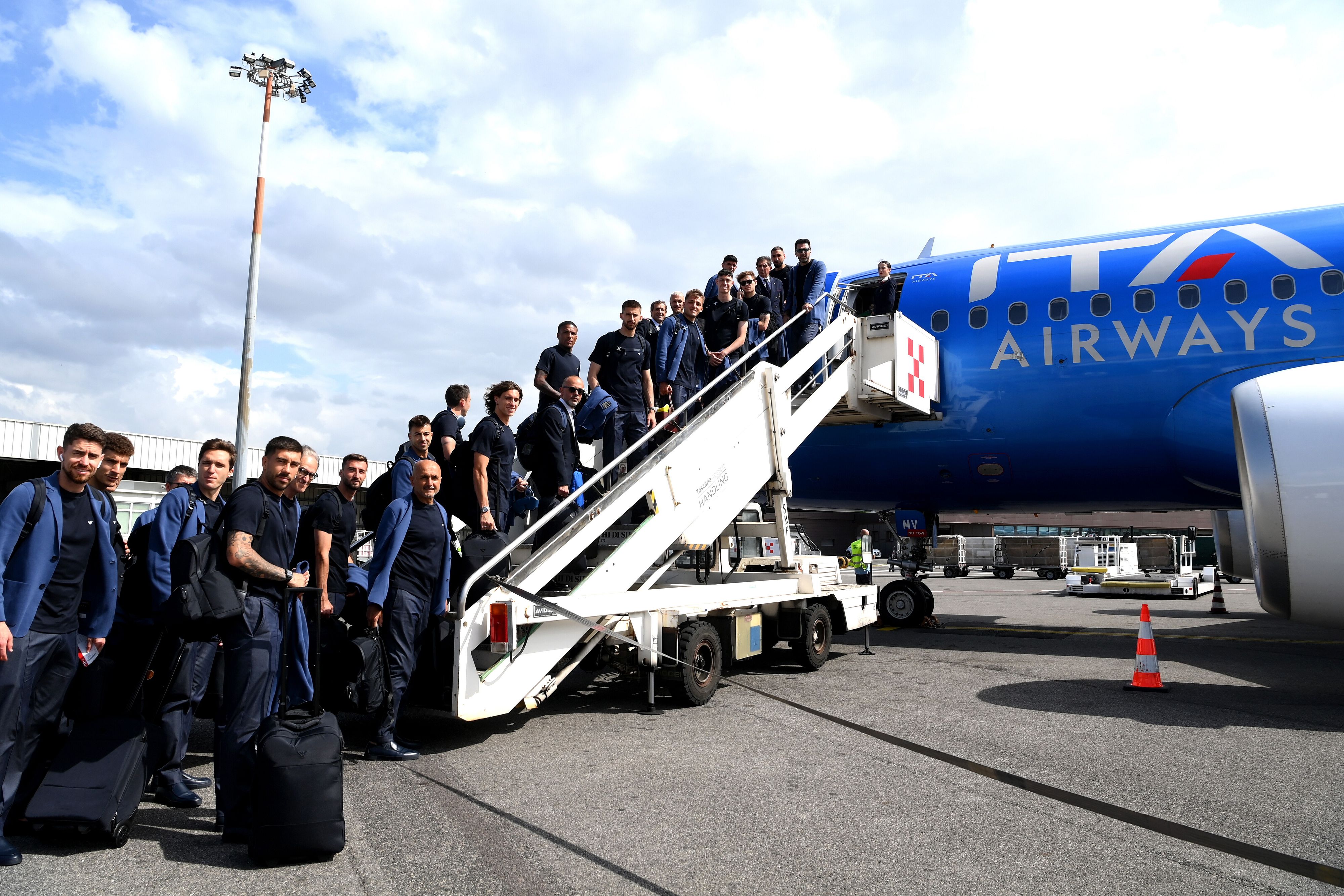 © Getty Images|Inizia ufficialmente la missione dell'Italia a Euro 2024: La Nazionale di Luciano Spalletti è atterrata in Germania all'aeroporto di Dortmund. La delegazione azzurra è partita alle 16.40 con un volo da Firenze, poi il trasferimento a Iserlohn sede del ritiro degli azzurri.