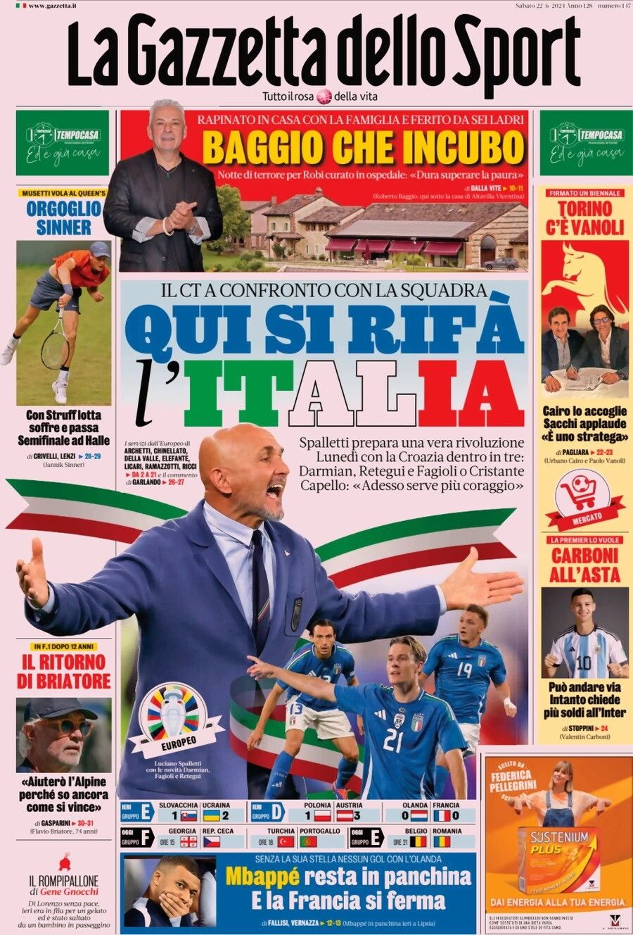 I giornali: sabato 22 giugno 2024
