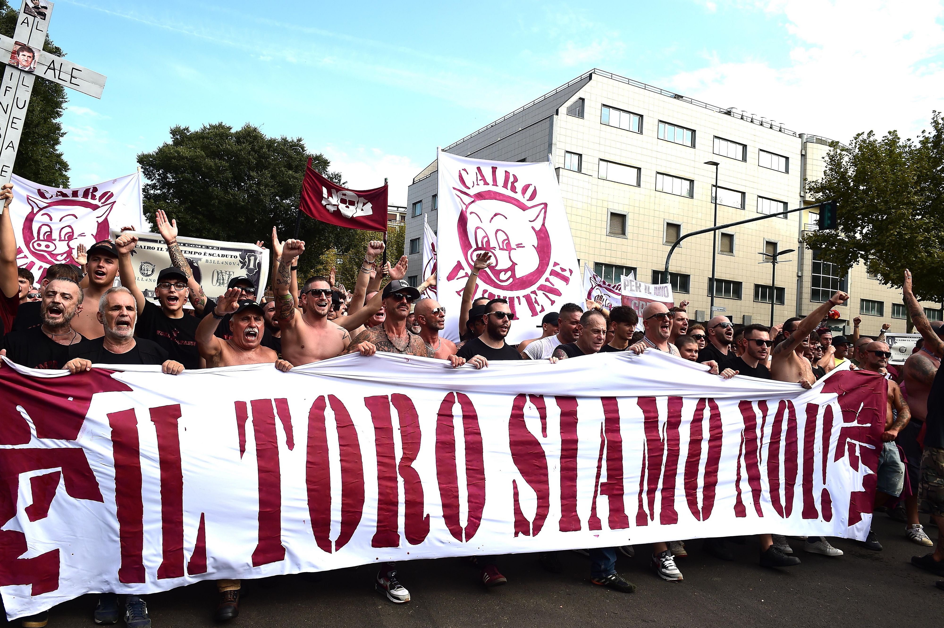 E' partito dallo stadio Filadelfia il corteo di protesta dei tifosi del Torino, sul piede di guerra contro la società presieduta da Urbano Cairo dopo la cessione di Raul Bellanova. Sfilano circa 5mila granata, diretti allo stadio Olimpico Grande Torino. In testa al corteo lo striscione 'Il Toro siamo noi!' e appena dietro i cartelli con la scritta 'Cairo, vattene!'. Cori e slogan contro la proprietà sono scanditi dai manifestanti che accentueranno la loro protesta all'esterno del 'Grande Torino' prima dell'inizio della partita. La contestazione dovrebbe proseguire anche durante il match. Al Filadelfia gli ultras del Torino hanno appeso uno striscione con la scritta "Ambizioni di un certo livello? Da 19 anni (l'era Cairo, ndr) il solito ritornello. Noi non siamo in vendita"