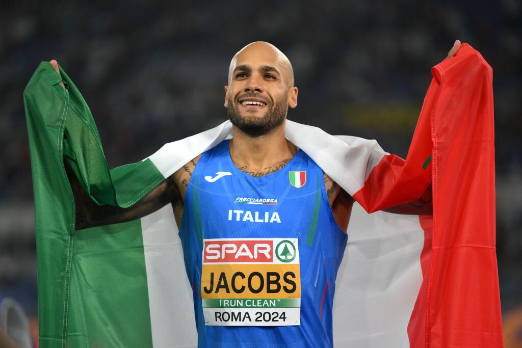 © Getty Images|Il secondo trionfo europeo di Roma 2024 per Jacobs avviene nella serata del 12 giugno, quando la squadra azzurra della 4x100 domina la finale grazie al tempo di 37"82, con la formazione composta anche da Matteo Melluzzo, Lorenzo Patta e Filippo Tortu.