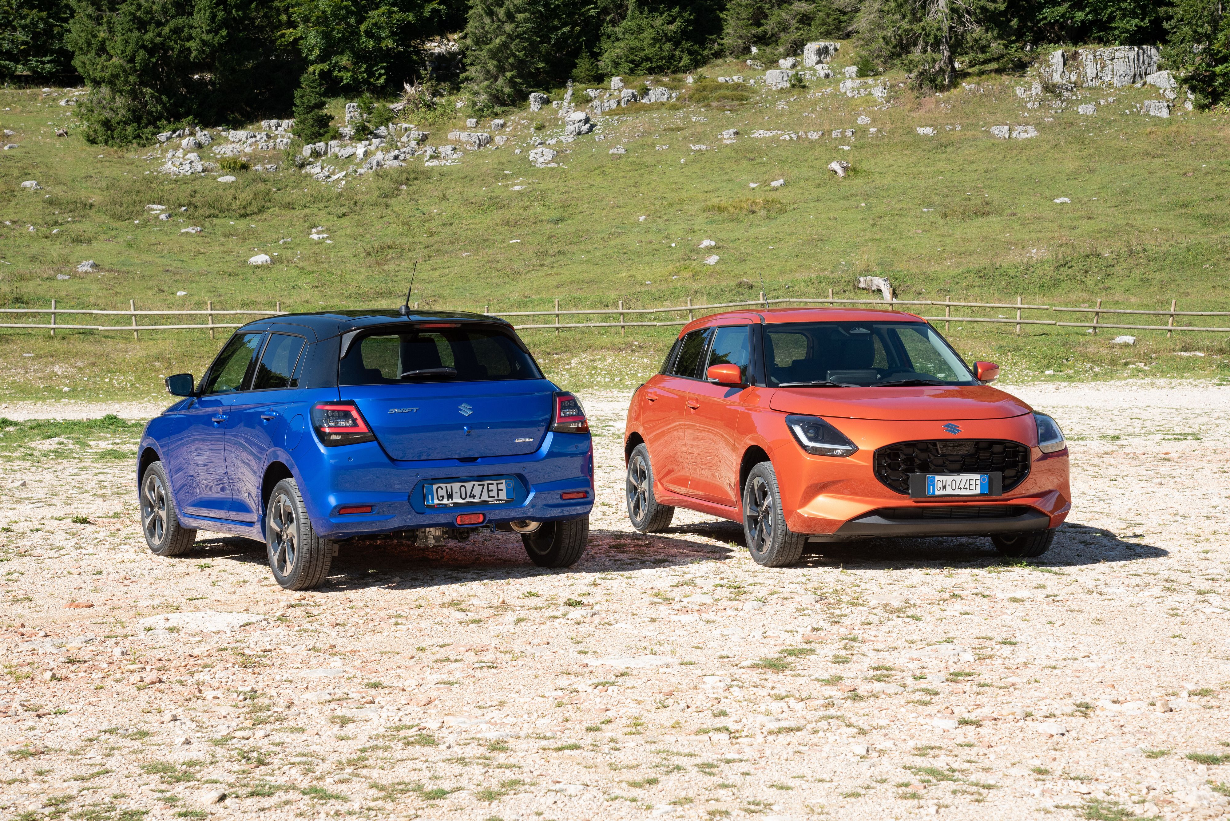 Suzuki ha scelto l’Altopiano dei 7 Comuni, in provincia di Vicenza e il 13° Raduno della community degli appassionati delle sue vetture 4x4 per la presentazione di Swift Hybrid 4x4 AllGrip. Impossibile pensare a una cornice migliore per il debutto in società di una vettura pronta a varcare i confini della città per assecondare gli stili di vita attivi, a stretto contatto con la natura e nel massimo rispetto dell’ambiente. Suzuki Swift Hybrid 4x4 AllGrip rappresenta un’offerta senza eguali nel panorama del mercato: è l’unica vettura a due volumi del segmento B equipaggiata con trazione integrale, il massimo per chi cerca un’auto di dimensioni compatte capace di muoversi con disinvoltura e sicurezza anche sui fondi accidentati e a bassa aderenza.Come la versione a 2 ruote motrici, anche la versione 4x4 è caratterizzata dall’iconico design a tetto sospeso e dalle linee sportive e filanti. In più la versione 4x4 AllGrip si differenzia per una maggiore altezza da terra (+25 mm rispetto alla versione 2 ruote motrici) e per la presenza del differenziale posteriore.Per destreggiarsi meglio in ogni condizione Swift Hybrid 4x4 AllGrip ha infatti un’altezza minima da terra di 140 mm e l’altezza totale della vettura tocca i 1.520 mm (rispetto ai 1.495 della versione 2 ruote metrici) Piccole differenze si registrano tra le due versioni a livello di ampiezza delle carreggiate. La carreggiata anteriore si riduce di 5 mm (1.515 contro 1.520 mm), mentre quella posteriore si allarga degli stessi 5 mm (1.525 contro 1.520 mm). Queste variazioni non incidono sul raggio di sterzata, che con i suoi 4,8 metri resta uno tra i più contenuti non solo della categoria ma in assoluto. Swift Hybrid 4x4 AllGrip ha una lunghezza di 386 cm e la sua carrozzeria ha una linea originale, elegante e sportiva al tempo stesso, nata anche con il contributo del Centro Stile Suzuki di Torino. La presenza di un vero albero di trasmissione meccanico e di un differenziale posteriore non modifica l’abitabilità della vettura che offre uno spazio interno eccezionale in rapporto alle dimensioni esterne. Stesso vale anche per il bagagliaio, la cui capacità standard è di ben 265 litri, la stessa della versione 2 ruote motrici.Grazie alla sua geniale semplicità, la Swift Hybrid con tecnologia 4x4 AllGrip Auto ha un peso complessivo di soli 76 kg in più della versione 2 ruote motrici, a tutto vantaggio dell’efficienza e della motricità sui fondi difficili. Suzuki Swift Hybrid 4x4 AllGrip ha una massa in ordine di marcia con conducente di soli 1.070 kg. Grazie al suo peso contenuto, Swift Hybrid 4x4 AllGrip fa lavorare al meglio la nuova motorizzazione ibrida 1.2 con sistema ibrido da 12 volt, che abbina un tre cilindri a corsa lunga e un motore elettrico che può sviluppare una potenza di 2,3 kW e una coppia di ben 60 Nm. Il loro gioco di squadra fa sì che la potenza e la coppia massima di sistema siano rispettivamente di 60,9 kW/ 82,8 CV e di 111 Nm. Sempre equipaggiata con un cambio manuale a cinque marce, Swift Hybrid 4x4 AllGrip ha un consumo medio di 4,9 l/100 km ed emissioni medie 110 g/km di CO2 nel ciclo misto WLTP.