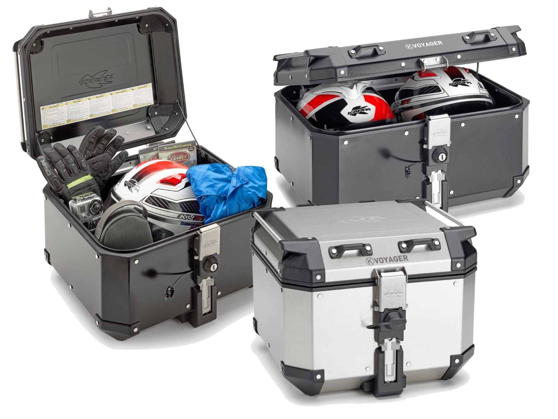 Kappa presenta a Eicma 2024 le nuove valigie K’Voyager disegnate per “vestire” maxienduro e crossover con un taglio squadrato e linee pulite. La linea K’Voyager include un top case disponibile in tre capacità (42, 48 e 58 litri), una valigia laterale offerta in due varianti da 37 e 48 litri e una nuovissima laterale destra scantonata da 33 litri. Le K’Voyager sono realizzate interamente in alluminio, con dettagli tecnici notevoli. Tra questi, per quanto riguarda le laterali, spicca il sofisticato sistema di aggancio Monokey CAM-Side, che prevede ben 4 punti di fissaggio (uno in più rispetto al classico sistema Monokey), oltre a indicatori colorati che confermano il corretto aggancio della valigia. Una linea completa, in definitiva, che si posiziona come top di gamma del marchio e che sostituisce la precedente K’Force, ereditandone design e capacità, ma migliorando le caratteristiche di leggerezza e stabilità.