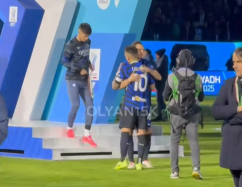Una sconfitta dura quella subita dall'Inter in Supercoppa Italiana, che lascia il segno. E Lautaro Martinez, da capitano, capisce l'umore della squadra al momento del ritiro della medaglia come finalista: una volta ricevuta la propria si è posizionato giù dal podio, in attesa che, uno a uno, arrivassero tutti i compagni per poi riservagli un abbraccio di consolazione. (foto tratte dal video di Khalid Alolyan su TikTok)