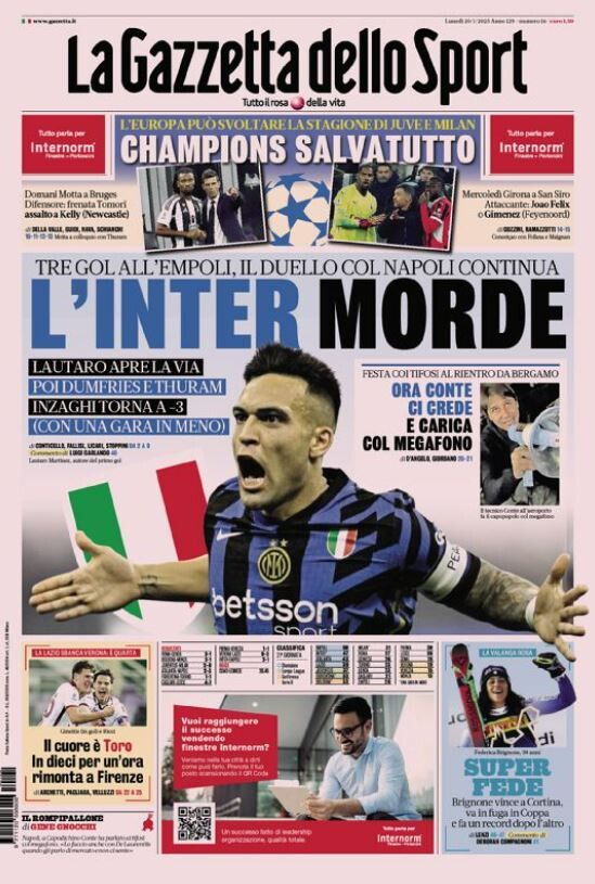 La rassegna stampa sportiva dei quotidiani italiani ed esteri