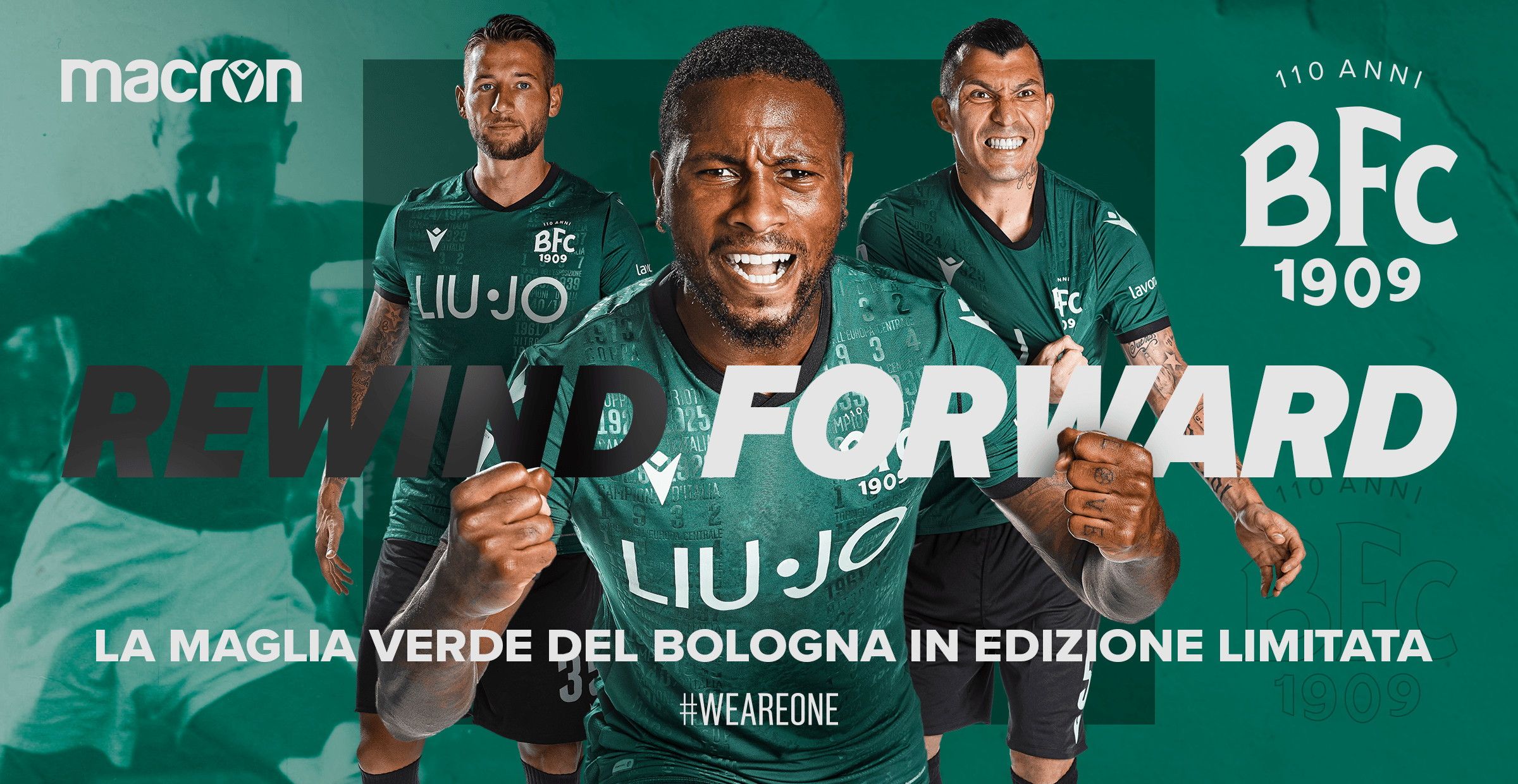 Il Bologna ha presentato la terza maglia per la stagione 2019/20: il colore scelto è il verde che rimanda al primo scudetto vinto nel 1925. Sulle strisce verticali è riportato il palmares del club rossoblù e Macron, sponsor tecnico, ha arricchito la divisa (che presentato un collo a V) con uno speciale stemma dedicato ai 110 anni del club. Il kit è completato da pantaloncini e calzettoni neri.