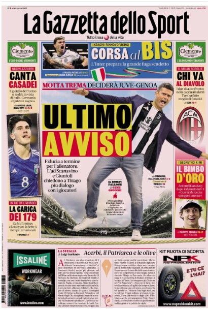 La rassegna stampa sportiva dei quotidiani italiani ed esteri