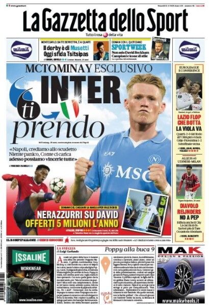 Le prime pagine dei quotidiani sportivi e le aperture di quelli generalisti