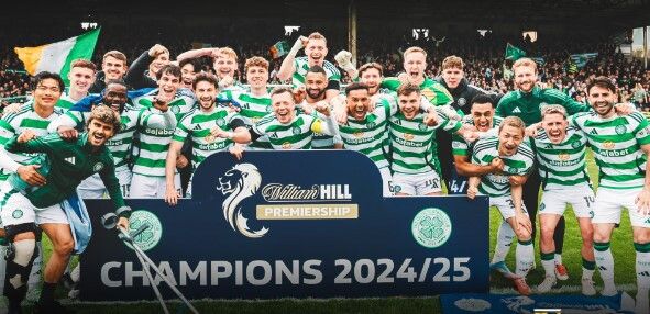Il Celtic ha eguagliato i Rangers, rivali acerrimi di Glasgow, conquistando il titolo di campione di Scozia numero 55 con quattro partite di anticipo. Una vittoria per 5-0 sul Dundee United nella Premiership scozzese ha portato il Celtic a 18 punti di vantaggio sui Rangers, secondi in classifica, a cinque partite dalla fine. Si è trattato del quarto titolo consecutivo per il Celtic, che è ancora in corsa per la sesta tripletta nazionale nelle ultime nove stagioni. Il Celtic ha già vinto la Coppa di Lega scozzese e ha raggiunto la finale della FA Cup scozzese, contro l'Aberdeen il 24 maggio. I Rangers hanno vinto l'ultimo dei loro 55 titoli in campionato nel 2021.