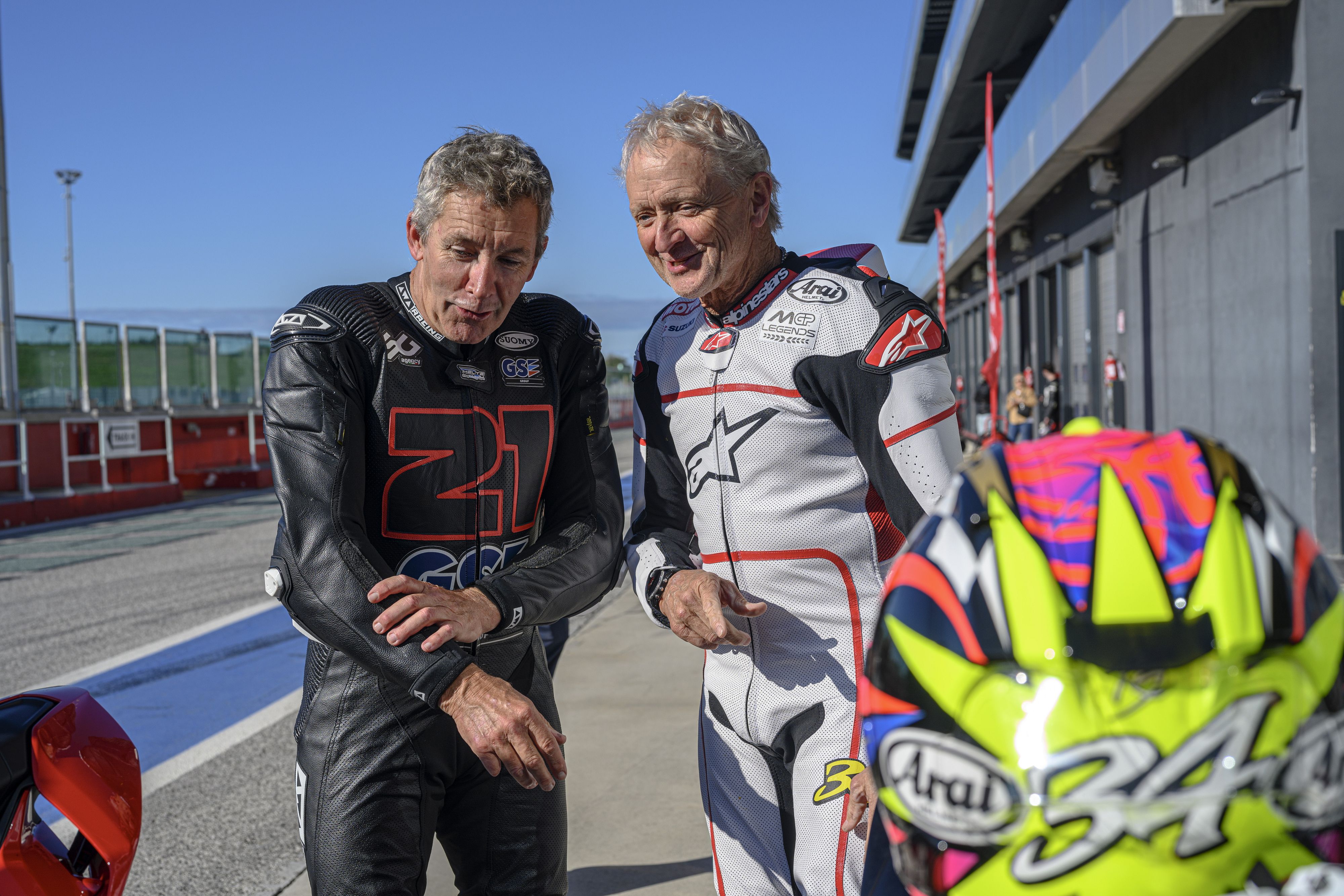 Kevin Schwantz e Troy Bayliss hanno dato spettacolo in pista a Misano in occasione dell'Eicma Riding Fest. Lo statunitense naturalmente su una Suzuki, mentre l'australiano in sella alla Ducati.