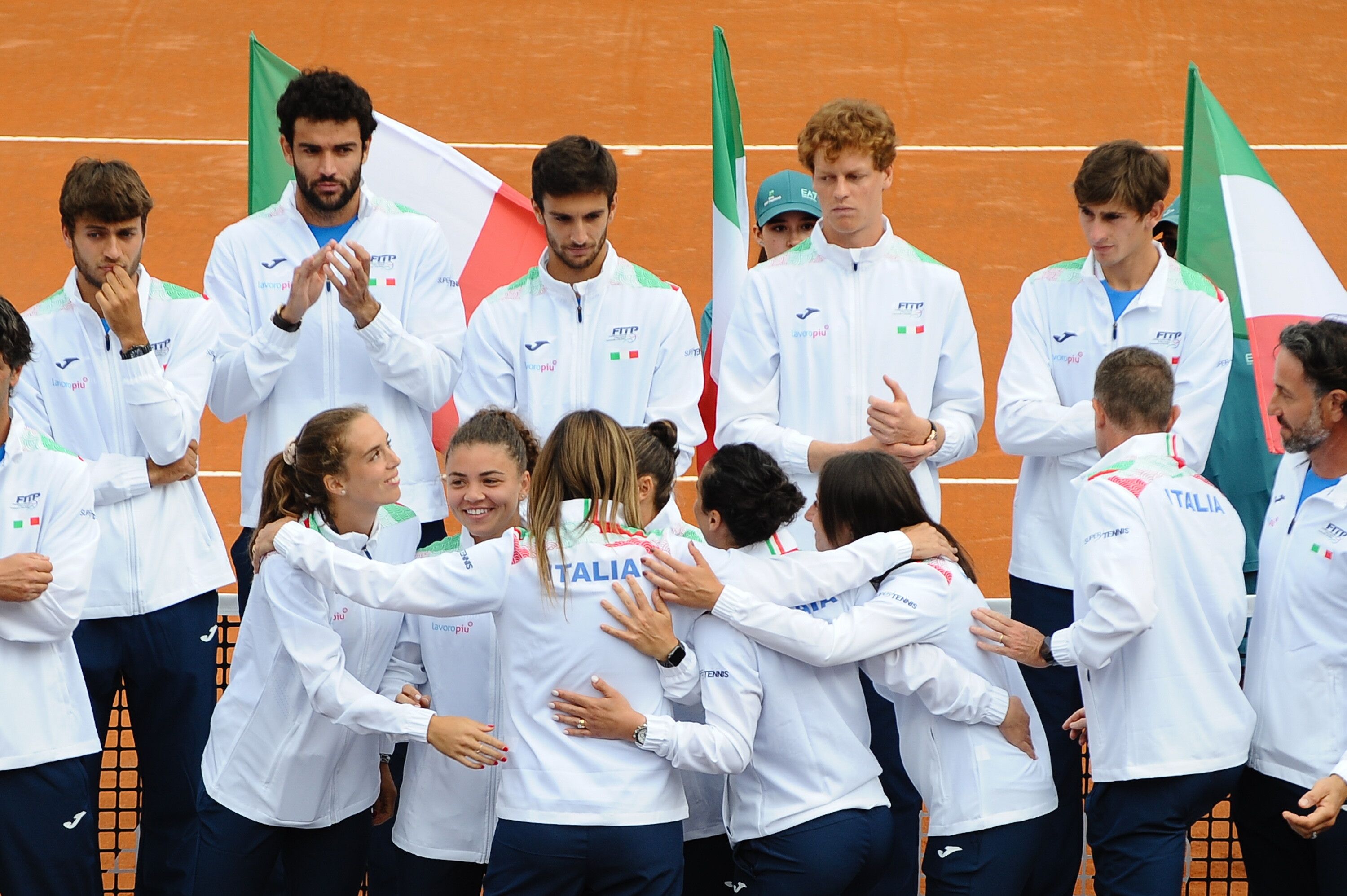 "Abbiamo vissuto emozioni profonde e insieme, l'orgoglio più grande è vedere una squadra unita con un obiettivo comune che allunga una mano e cerca chi è più indietro e l'hanno fatto anche con me. Non c'era niente se la Fitp non fosse stata con me e appoggiato il progetto cercando i valori di questo sport", ha aggiunto il ct della Italia femminile Tathiana Garbin. "Porto ancora tanto di quel trionfo, arrivato per me dopo un periodo difficile. Sono super felice e anche un po' teso. Siamo tutti carichi, forza Italia", ha detto Matteo Berrettini. "Sono stati giorni incredibili, condividere questo con i ragazzi è stato ancora più bello. Siamo un vero gruppo con tutto lo staff, credo anche che anche questa sia una vittoria, sono orgogliosa di fare parte di questo gruppo, sono carica e aspettiamo il vostro tifo. L'aspettavamo da tanto di tornare qui dopo un anno meravigiloso, spero ci possiate supportare tantissimo". La cerimonia si è conclusa con un brindisi sul campo e un cadeaux ai due capitani.
