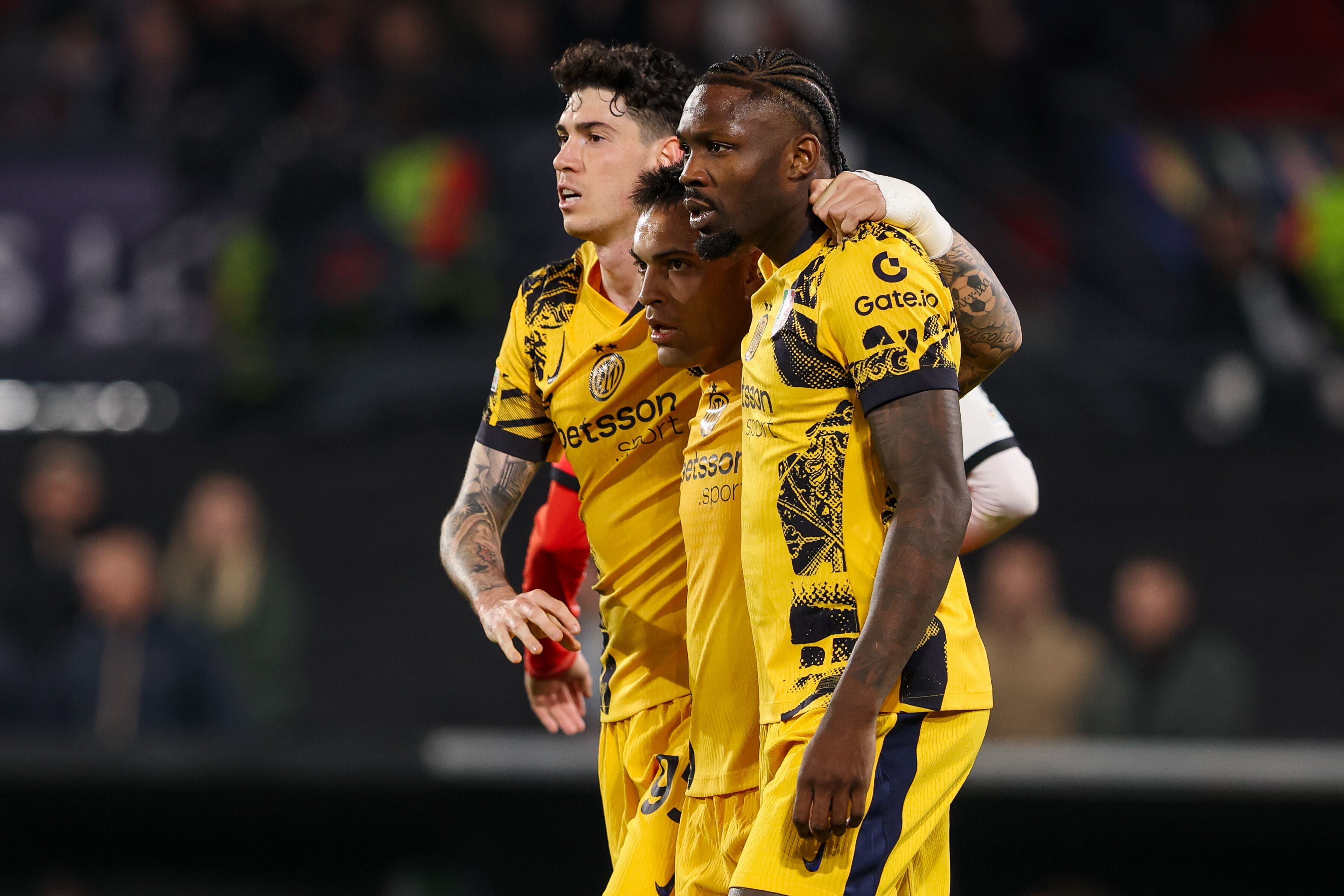 L'Inter ha deciso di giocare con la terza maglia, quella gialla, la finale di Champions 2024/25 a Monaco di Baviera contro il Paris Saint-Germain: i parigini, 'in casa' come da tabellone, hanno avuto il diritto di giocare col blu della loro prima divisa, quindi i nerazzurri, 'in trasferta' da sorteggio, hanno dovuto scegliere se adottare la seconda maglia, bianca, o, appunto la terza. Scelta ricaduta su quest'ultima forse anche per un fatto scaramantico: l'unica sconfitta stagionale in Champions, contro il Leverkusen, è arrivata con la seconda maglia. In giallo l'Inter questa stagione ha vinto 7 volte (due in Europa) su nove: al bilancio vanno aggiunti il pari di Napoli e il ko di Bologna.