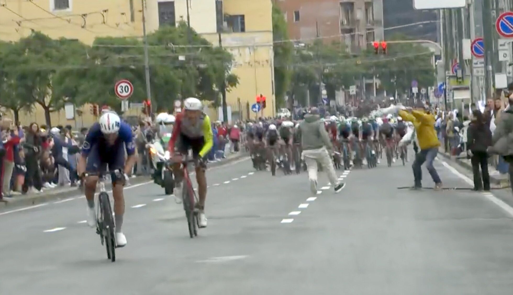 La Polizia di Stato ha denunciato a Napoli un 67enne con precedenti di polizia, per lesioni personali e resistenza a pubblico ufficiale: l'uomo, impugnando un tubo flessibile, ha attraversato la carreggiata in via Cristoforo Colombo, a pochi chilometri dall'arrivo, proprio quando stavano transitando i ciclisti impegnati nella sesta tappa del Giro d'Italia. Gli agenti della Polizia di Stato, impegnati nei servizi di ordine pubblico, intervenuti, bloccando il 67enne che è stato poi denunciato da personale della Digos.