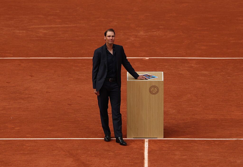 Momenti di grande emozione e commozione sul Philippe Chatrier per l'omaggio a Rafael Nadal, vincitore per ben 14 volte (record assoluto) al Roland Garros. Sugli spalti, oltre alla famiglia, anche Carlos Alcaraz e il suo allenatore Juan Carlos Ferrero. Da parte della folla presente sugli spalti, tutti con maglia celebrativa o color ocra come la terra battuta, cori per l'ex campione spagnolo che a stento ha trattenuto le lacrime. Nadal è stato poi raggiunto in campo dagli altri Fab Four con cui ha battagliato per l'intera carriera, Roger Federer, Novak Djokovic e Andy Murray. La cerimonia si chiude con la consegna a Rafa di un trofeo con tutti i suoi trionfi parigini e la scritta "Leggenda" e per finire la sua impronta sul Philippe Chatrier, omaggio che ha fatto scoppiare in lacrime il più grande tennista di sempre sulla terra battuta.