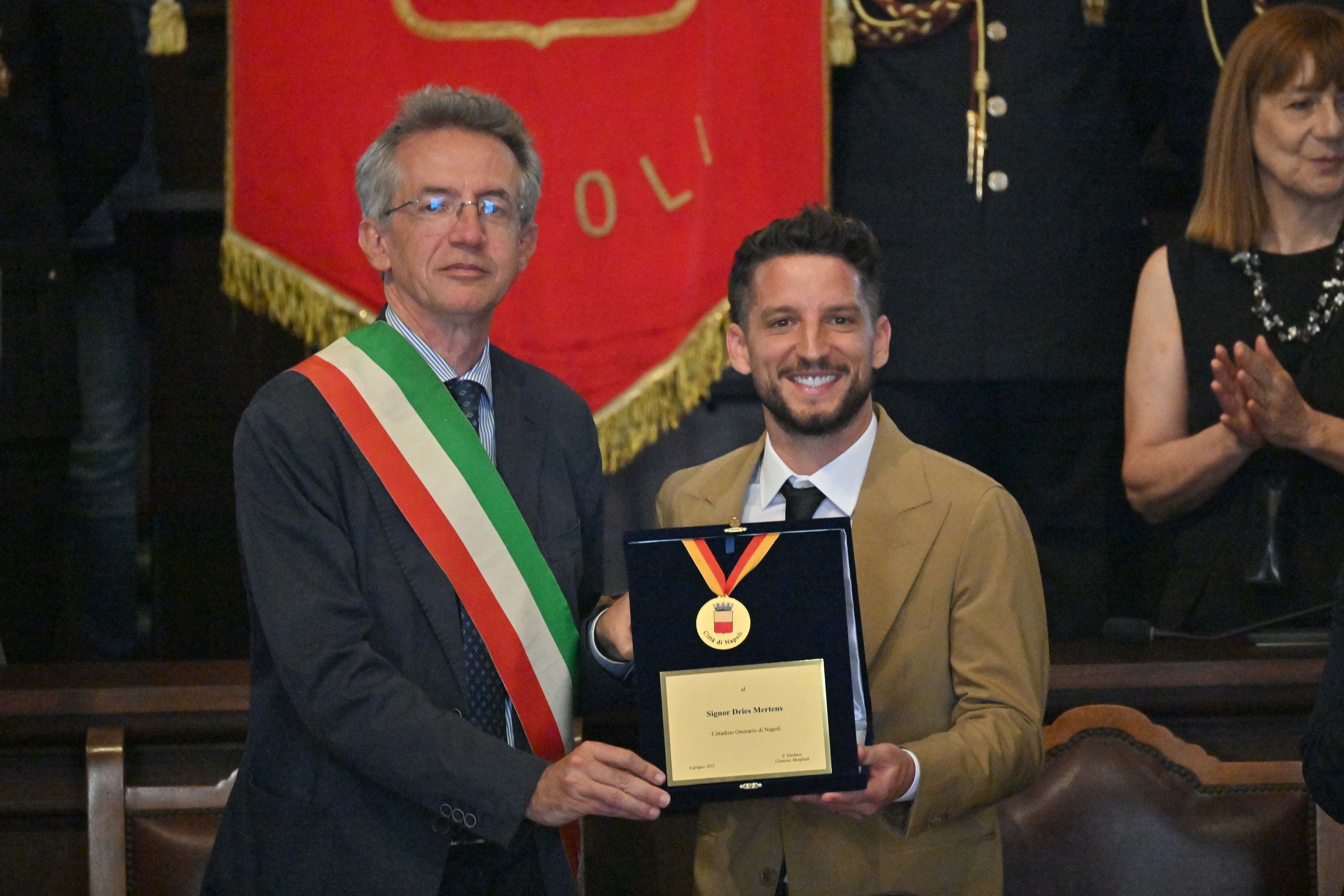 "Cari napoletani, 12 anni fa sono arrivato in questa città per firmare con l'Ssc Napoli. Oggi non sono qui come calciatore, ma come uomo che si è innamorato di questa città. Per questo voglio ringraziare il sindaco e il Consiglio comunale che hanno reso possibile questo gesto. È veramente un onore che mi tocca molto". Così Dries Mertens nel suo discorso in Comune dopo aver ricevuto la cittadinanza onoraria di Napoli per i suoi meriti sportivi e non solo. "Credo di essere qui non solo per quello che ho fatto in campo, ma soprattutto per come ho vissuto fuori dal campo. Napoli è caotica, rumorosa, a volte un po' sporca ma chi vede solo questo non ha mai conosciuto davvero la città. Per me è la vista sul Vesuvio, sempre lì presente, forte e speciale. Il vero Paradiso è sempre stato qui", ha aggiunto l'ex calciatore azzurro ricordando come "i napoletani non sono appassionati solo allo stadio, ma lo sono nella famiglia e nella vita. Qui ho capito che basta davvero poco per essere felice. Questa città mi ha cambiato dentro e fuori dal campo, mi ha fatto sentire come a casa. È qui che ho costruito la mia famiglia, ho dato a mio figlio un nome tipico napoletano (Ciro, ndr) così porterà sempre con se la storia di questa città. Una storia d'amore e legame vero, Napoli sarà sempre nel mio cuore e da oggi anche io sarò un po' nel cuore di Napoli". "Se oggi sono qui è anche grazie persone molto importanti della mia vita, i miei genitori. Grazie per l'educazione che mi avete dato sempre - ha proseguito commosso - e poi la persona più importante: mia moglie, che nei momenti difficili è sempre stata la roccia della famiglia. Nessuno è perfetto, ma lei ci è molto vicina", ha concluso.